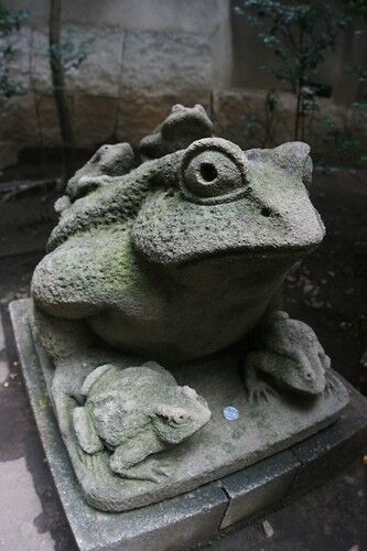 柳宗理を観に行った日のこと。 ♪ある〜日 町の中 カエルに 出会った♪……と、思わず歌いたくなるくらい意外な場所でカエルさんたちに遭遇しました。これっ。石のカエルです。そのすぐそばには、こんなカエルたちも。こちらは陶器?のカエルさんたち。さてさて…