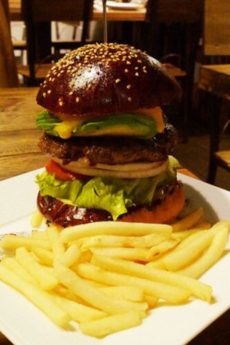 仕事の用で目黒に行くことがありまして。ちょうどお昼時だったので行ってみたのが「ハングリーヘブン」。ハンバーガーの専門店です。実は前回フラれてて、二度目のチャレンジ。アボカドチーズバーガー♪ すっごい背の高さ…!ドリンク付きで1000円だったかな、…