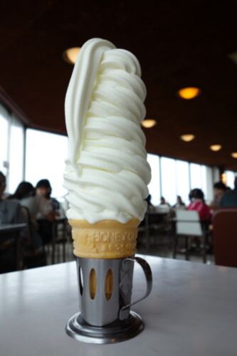 すっごいソフトクリームがあると聞いて、夏休み、食べてきたんですよ。東北道をひた走り、遠路はるばる、岩手県まで。ソフトクリーム自体も変わっているけど、ロケーションもすごいし、食べ方も変わっている、という噂。 噂のソフトクリームはデパートの大食…